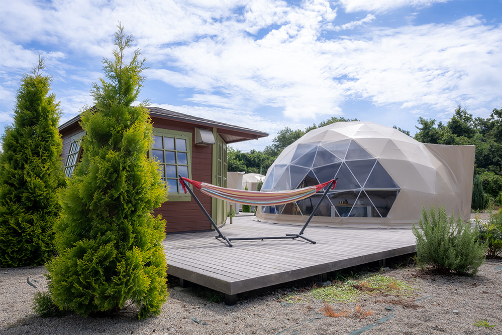 豊かな自然に囲まれたグランピング施設で大人も子供も楽しめます。